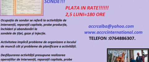 Ocupația de sondor se referă la activitățile de intervenții, reparații capitale, probe producție, închideri și abandonări la